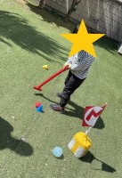 すっかり暖かくなり、お子様達は学年の終わりを迎える時期になりました。 外で過ごしやすい季節になったので、お天気のいい日は庭で活動を行いました。 せっかく人工芝の庭を楽しまないわけはない とゴルフを楽しんだり お部屋で上達した長縄跳びも、行いました。 まずは個人レッスンで、棒を使って、開いて閉じてと 同じ場所で繰り返し跳ぶ練習。 「もう疲れた~」と息の上がるお子様達に、 「じゃあ、もうお部屋に...