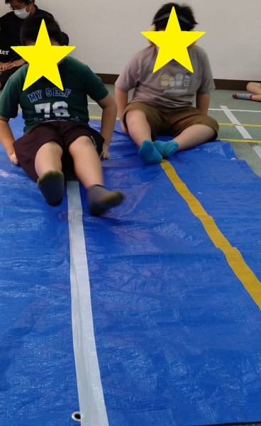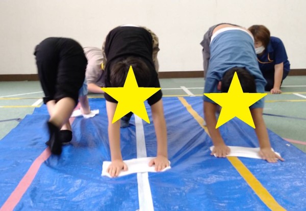 今ではあまり見られなくなってきている学校清掃での雑巾がけを活動に取り入れてみました!!ブルーシートを床の代わりにしての競争です!!