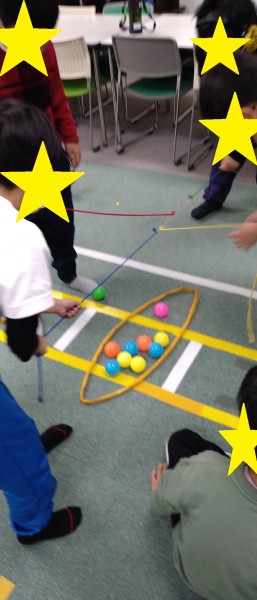 お子様たちは、チームで協力しながら、ボールが落ちてしまっても最後まで諦めず次なる方法を見つけ挑むことができていました!!
