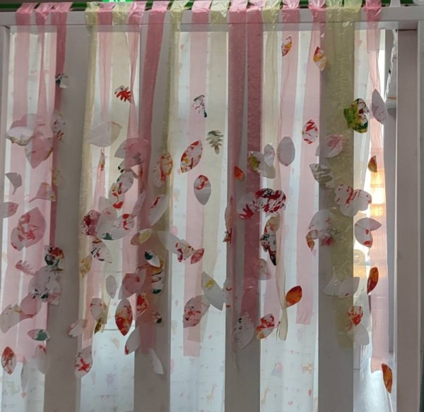 その後、葉っぱ型に切り抜いてカーテンに仕上げました。