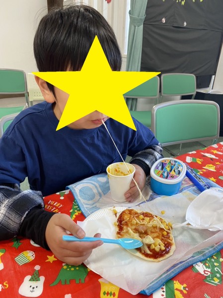 今年のクリスマス会はお子様たちがとても楽しみにしていたピザ🍕作りをしました😊