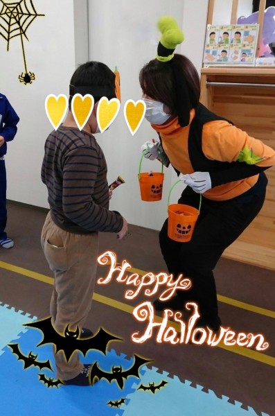 職員の仮装にびっくりしてしまったお子さんもいらっしゃいましたが、「Trick or treat❣」と、みんなお菓子をもらうことができました(^-^)❣