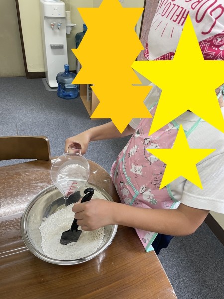 ボールに白玉粉を入れたらお水を少しずつ入れていきます!!