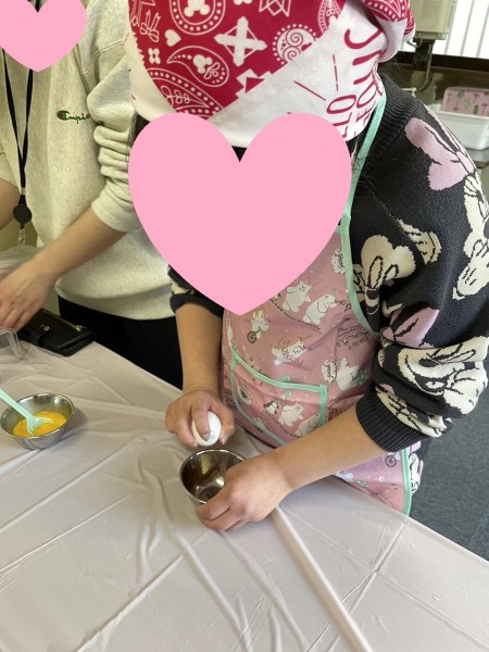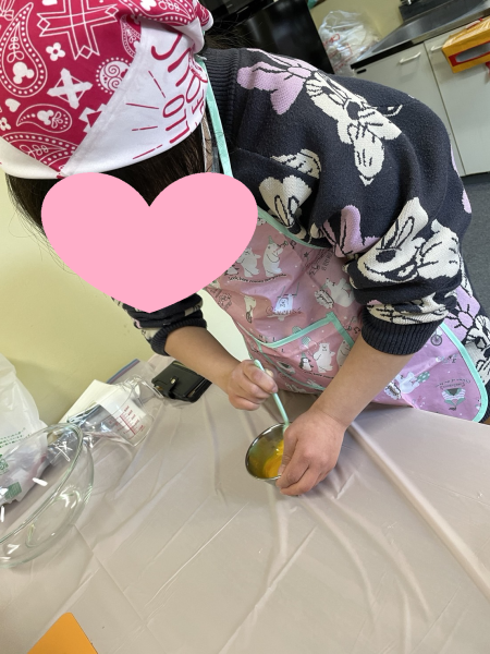 卵もサポートの元、割る・かき混ぜるが上手にできていました💕