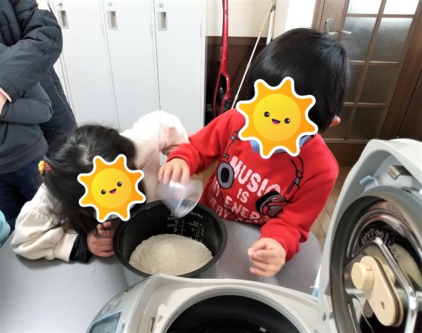 ②お米をといで…「水が冷たいね!」