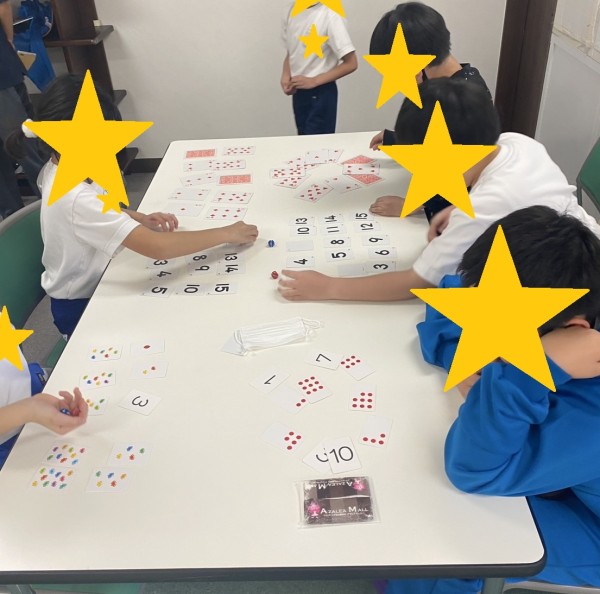 数字に親しみを持ってもらおうと、サイコロとカードを使って対戦形式のバトルしました。