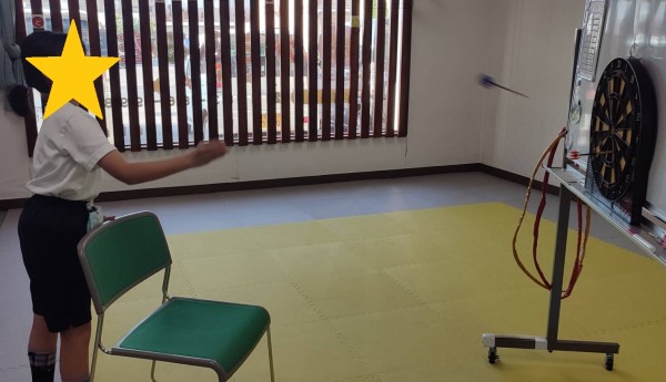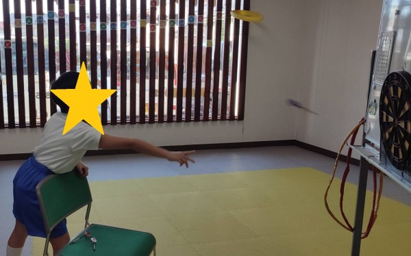 本日はダーツに挑戦しました。ダーツの基本的なルールや楽しみ方について学んだ後、みんなで安全に競技を楽しむことができました。的を狙って投げるという行為は簡単そうに見えて、意外と難しく、一部のお子様は苦戦する場面もありましたが、諦めずに挑戦する姿勢がとても印象的でした。
