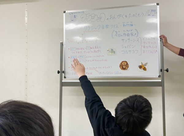 板書された「ショパン」「動物」の文字だけで、