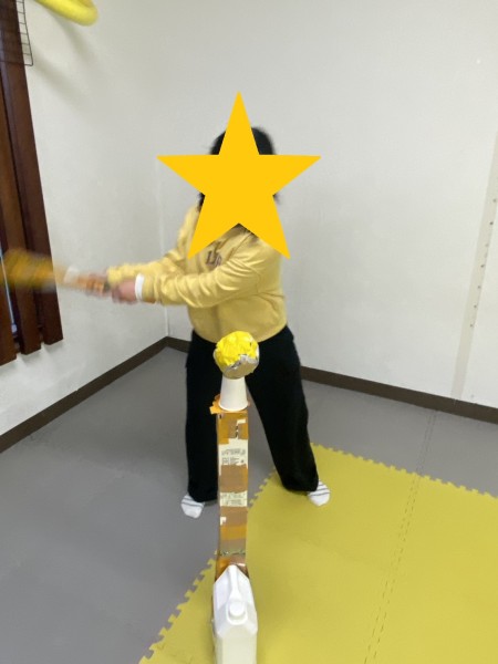 ボールは専用の台に乗せて行うため、打つ前にしっかりとボールを目で確認でき、狙いを定めて打ち返すことができます。お子様たちは「よく見て、えいっ!」と力強くスイングし、遠くまで飛ばすことができると大盛り上がり!「今のすごく飛んだ!」「もう一回やりたい!」と、笑顔と歓声が絶えない時間となりました。
