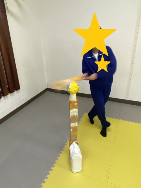 朝晩の冷え込みが一段と厳しくなり、冬の足音が少しずつ近づいてきました。街の木々も葉を落とし始め、季節の移ろいを感じる頃となりました。からふるでは、寒さに負けず、お子様たちと元気いっぱいに活動を楽しんでいます。今回ご紹介するのは、「ボール打ちチャレンジ」です。使用するボールは、新聞紙をふわっと丸めて作った特製ボール。打つ前に、皆でボールを中心の箱へ狙って投げてのウォーミングアップもしました。