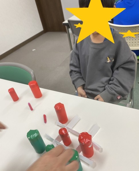 ”4つ並べると勝ち”で、熟考するお子様も多く、時間途中で勝敗がつかないかと思われましたが、緑のお子様が終了間際、見事4つ目を置いて 高らかに勝利宣言「僕の勝ちだ!」