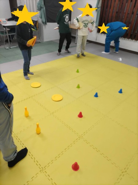 最後は、マットのマス目を利用して、チーム戦で行いました。