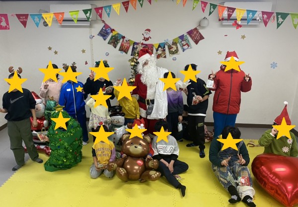 そしてお待ちかねのサンタさんが登場し、よいこのみんなはプレゼントをゲットできたのでした。職員はお子様達の笑顔のプレゼントをいただきました。