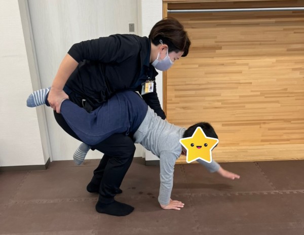 体幹や筋力向上、手の平全体で床を捉えることで発達を促せます(^-^)