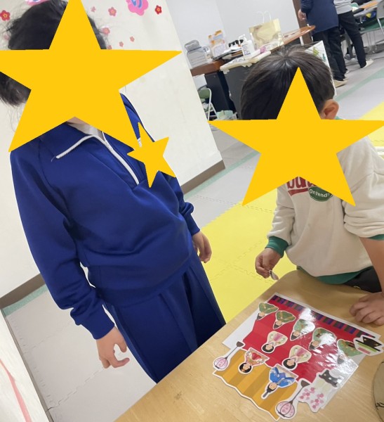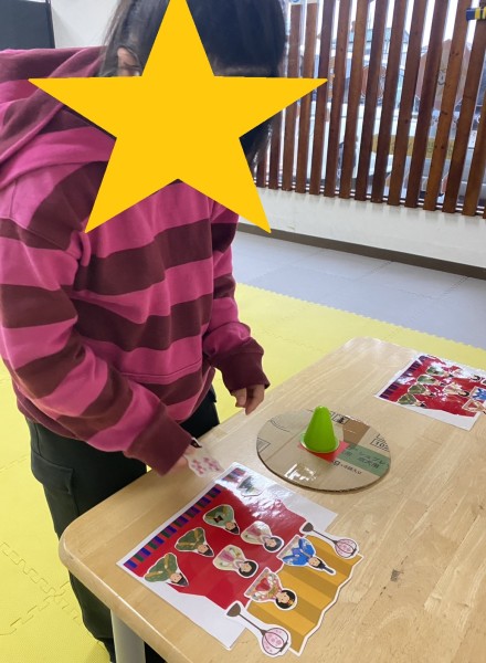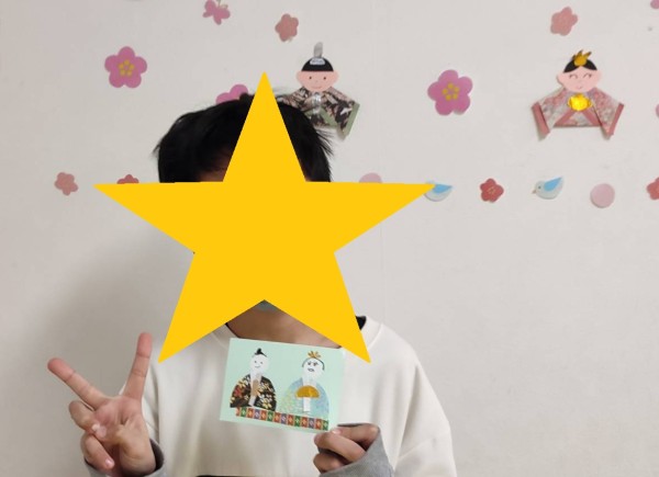 お内裏様用、お雛様用とそれぞれ別の色を用意したのですが、選ぶ色がそれぞれで、「こっちが女の人で、こっちは男の人だよ」と声掛けするのですが、職員が「これが合う」と思った色と違うものを選ぶお子様がいて、「時代だな~」と改めて感じました。