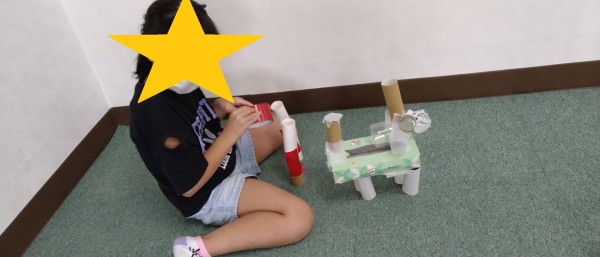 待ちに待った自由工作‼ からふるの活動の中でも必ず上位に来る大人気の活動です。たくさん集めた廃材を使って、思い思いの作品に仕上げていきます。