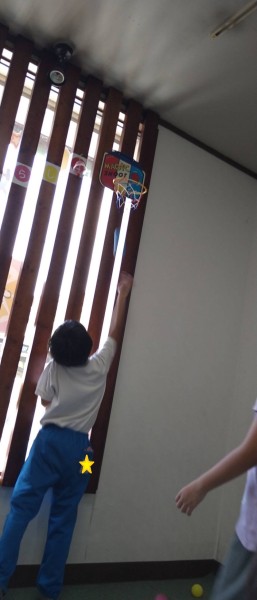バスケットゴールを設置してみました。 さっそく食いつくお子様たち。
