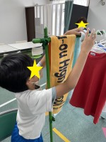 そーっと そーっと 紙風船運びをしました。どうやったら 落とさずに うまく運べるか? 勝負に真剣なお子様たちは、同意のうえ、風に邪魔されないよう エアコンの風も緩めて、汗をかきながら そろりそろ...